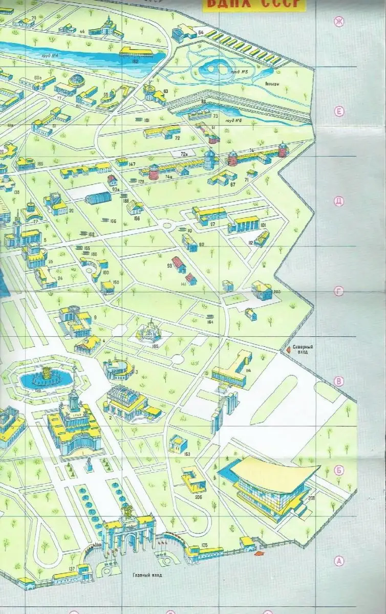 guter bis sehr guter Zustand, geringe Gebrauchs- und Alterungsspuren: wenige kleine Einrisse - teils etwas eselsohrig, 2 Stadtpläne, ein "normaler" und einer mit den eingezeichneten und bezeichneten Pavillons der WDNCh (Ausstellung der Errungenschaften der Volkswirtschaft - befindet sich in Moskau am Prospekt Mira unweit der nach dem Ausstellungsgelände benannten Metrostation WDNCh. - Wikipedia), Papier, ca. 27 x 11,5 (aufgeklappt ca. 54 x 68,5), 16 Seiten