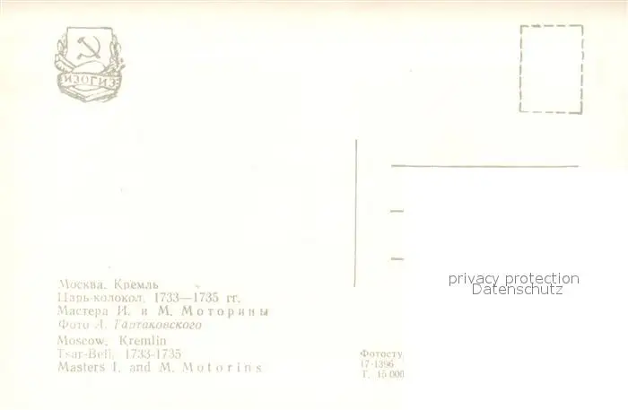 Moskau_Moscou Tsar Bel Masters I Motorins Moskau Moscou postalisch nicht gelaufen 1921-1965 Erhaltung siehe scans [KathaD81] Kathoren