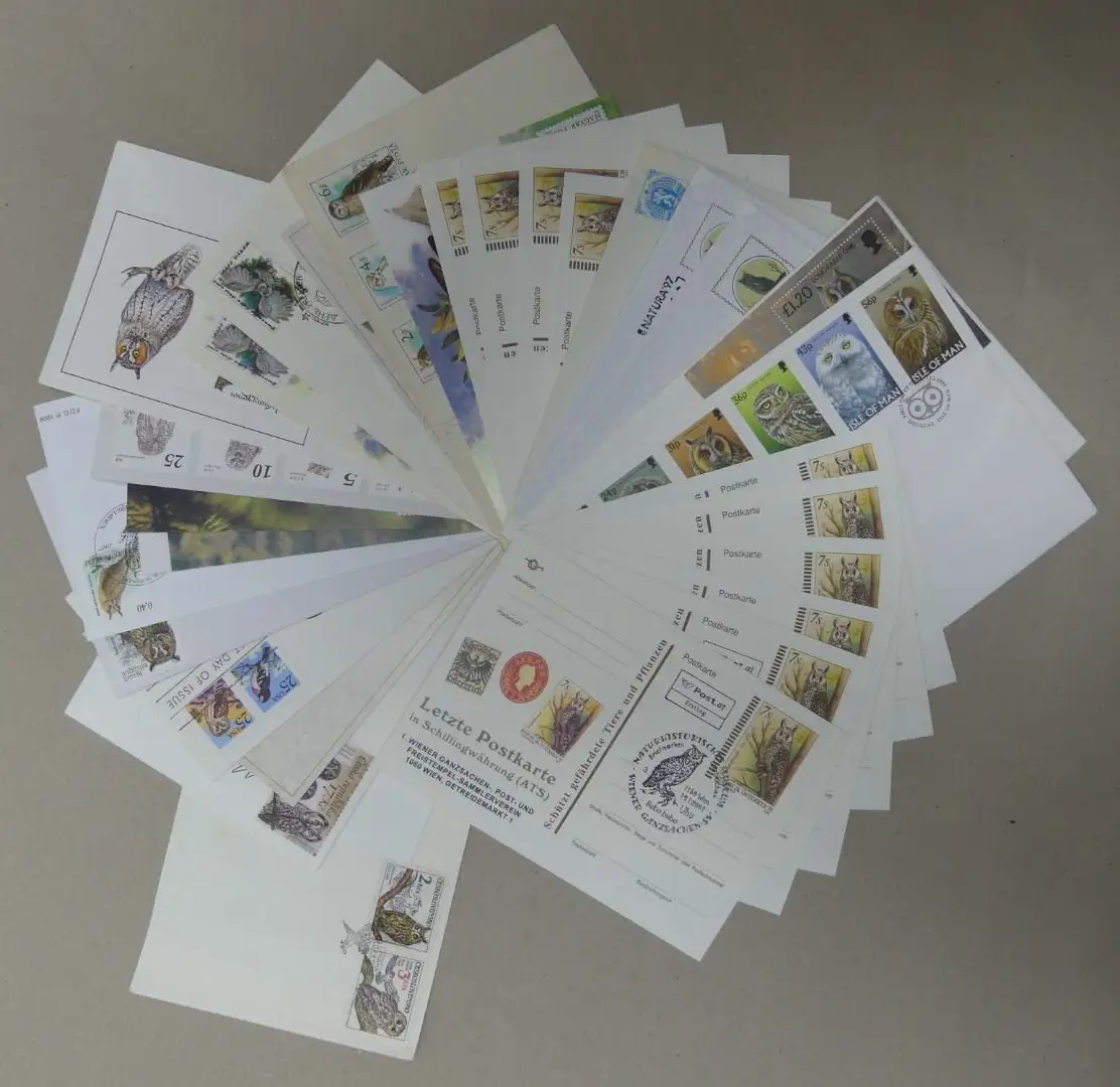 Motiv Eulen Lot von 50 Stück auf Brief oder Postkarte #IM882