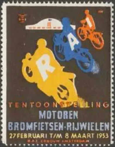 Tentoonstelling Motoren Bromfietsen-Rijwielen, Niederlande, Holland, Größe/Zustand: 6x4 , guter Zustand, Original alte Reklamemarke die seinerzeit für die Werbung benutzt wurde