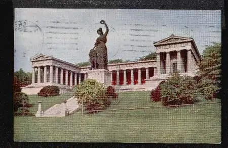 München. Bavaria mit Ruhmeshalle - Gelaufen 1920. (NPLZ 80000)