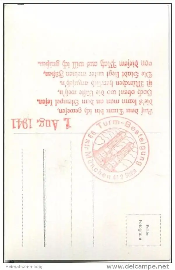 München - Blick vom Frauenturm - Foto-AK - Stempel Turm-Besteigung 1941 - kleine Stempelspur (G37067) *