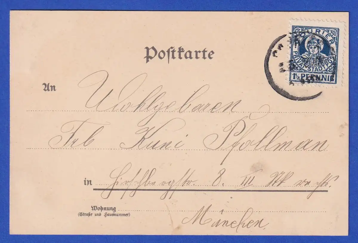 München Courier Privat-Stadtpost 1 1/2 Pfg O auf Bildpostkarte Weihnachten