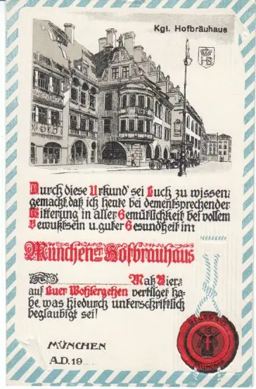 rückseitig Stempel: Aufgabeort Kgl.Hogbräuhaus München Pächter Karl Mittermüller ...
