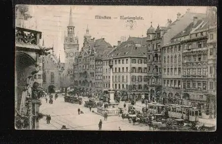 München. Marienplatz - Gelaufen 1910. Briefmarke abgerissen. (NPLZ 80000)