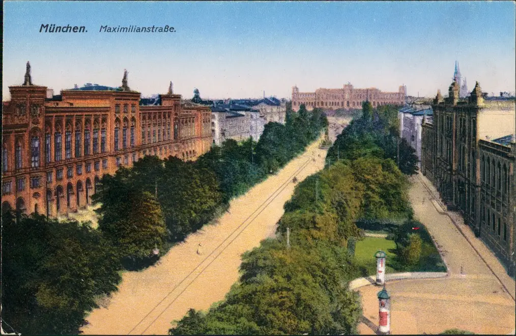 München Maximilianstrasse Maximilianeum Allee Litfaßsäule 1910