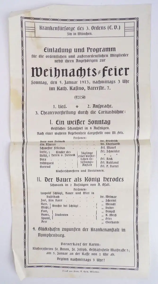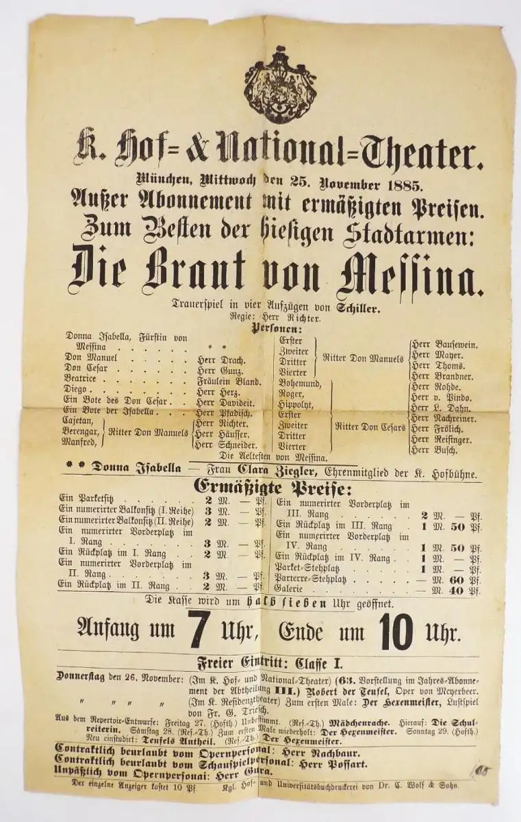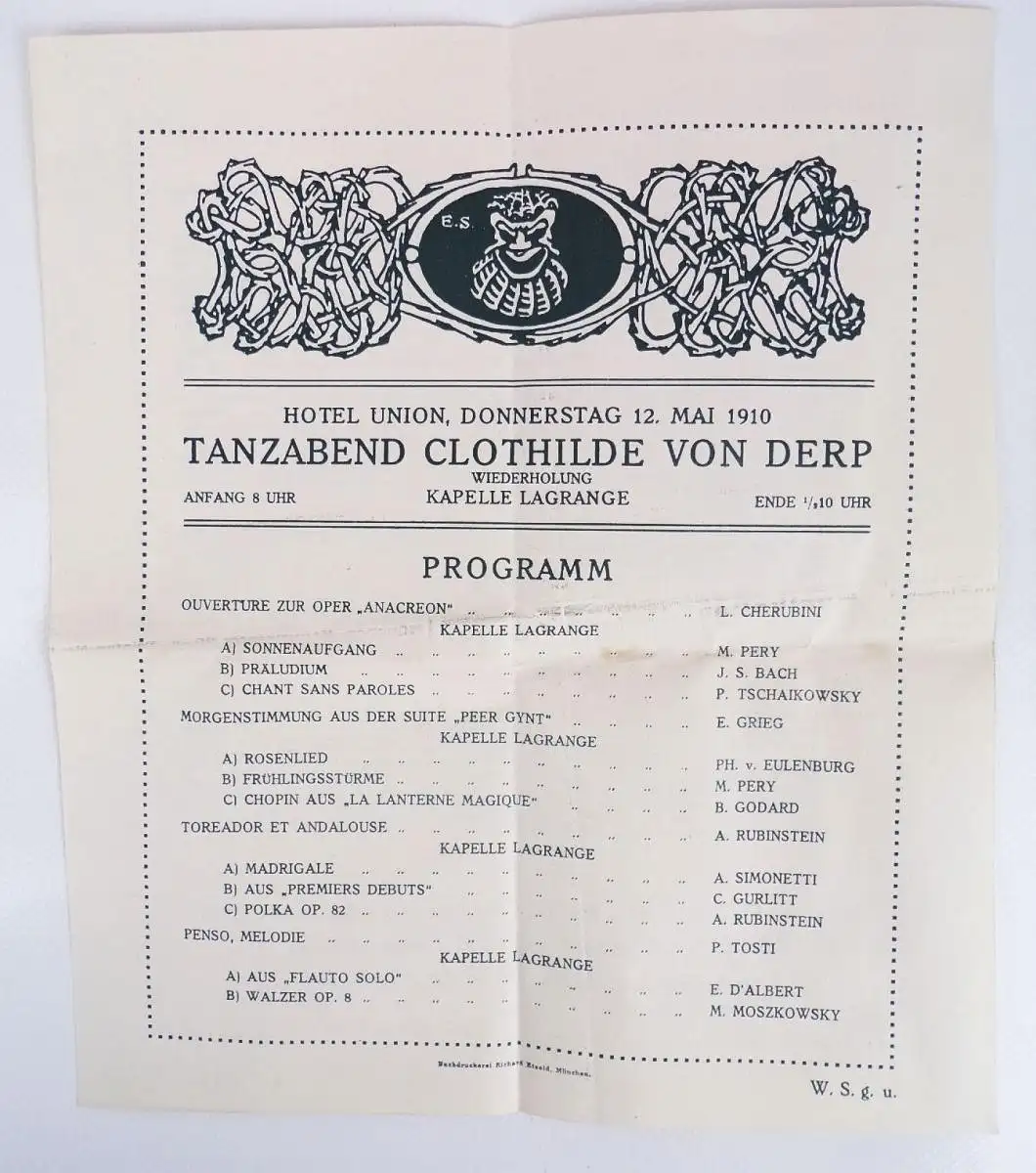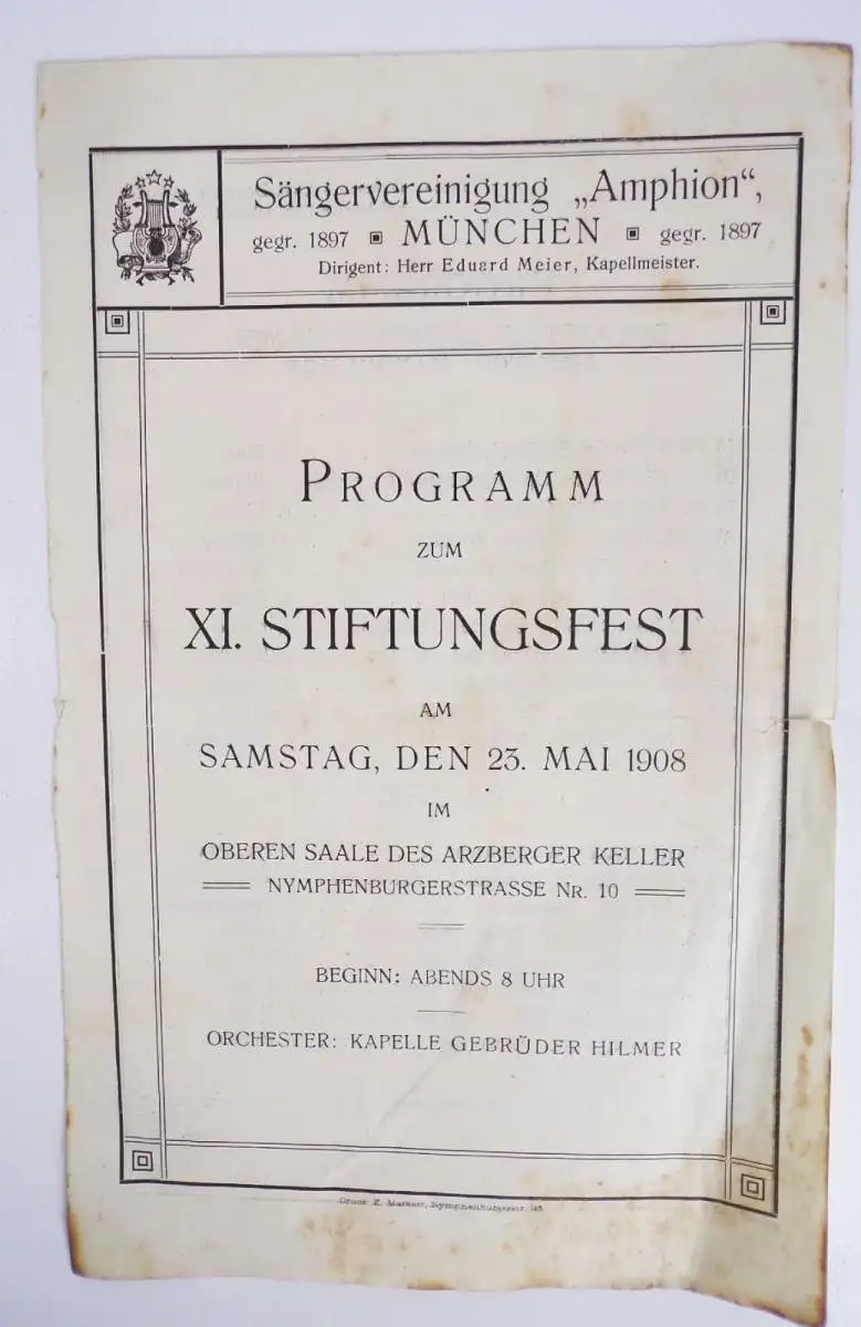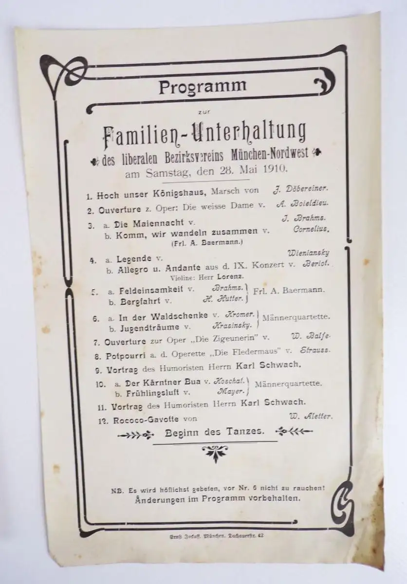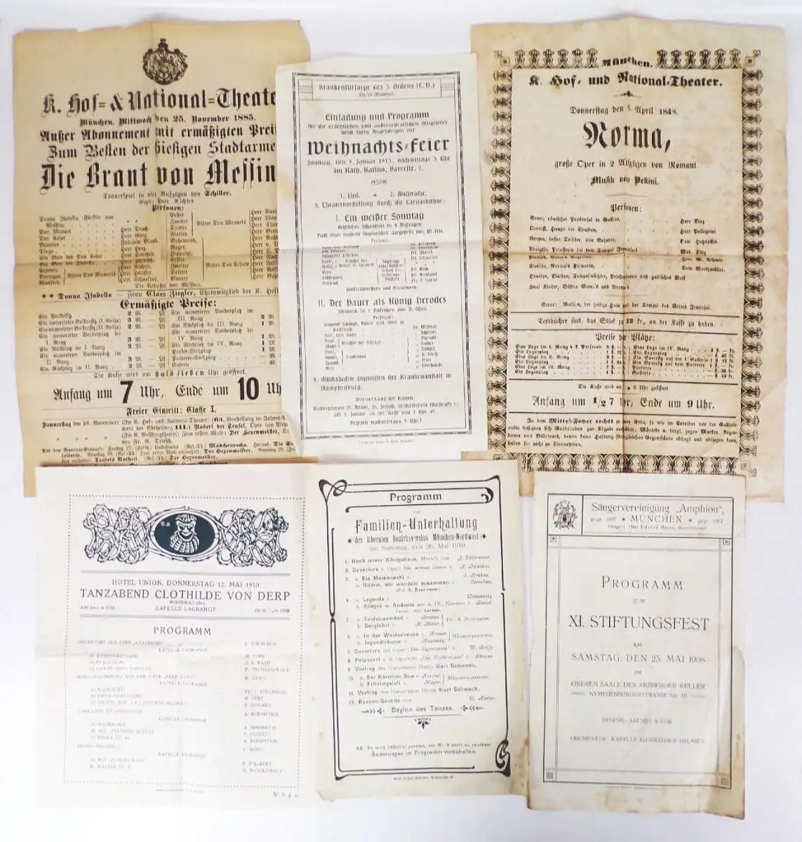 6 originale Programme zu verschiedenen Veranstaltungen in München, ca. um 1900.