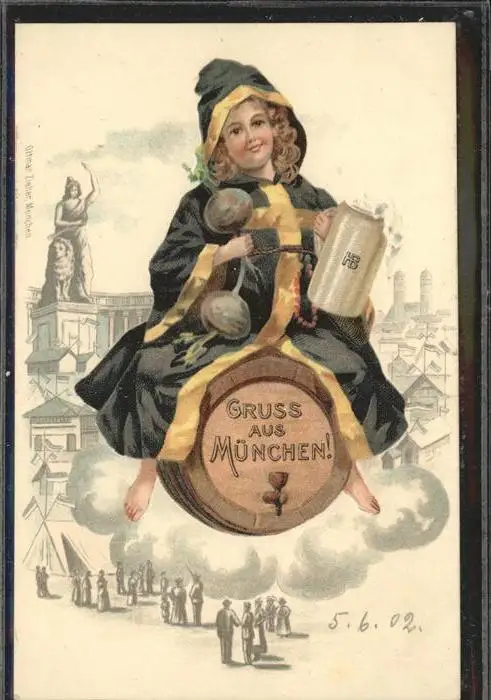 Muenchner Kindl Bierfass Muenchen postalisch nicht gelaufen 1902 Praegedruck gute Erhaltung Praegedruck Paoletti