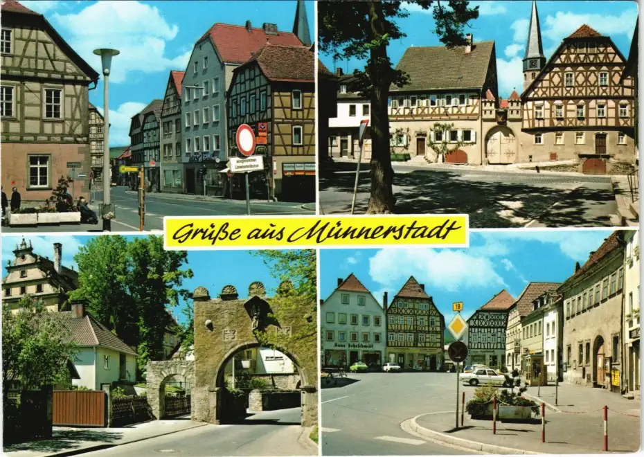 Münnerstadt Mehrbildkarte mit Marktplatz, Anger, Jörgentor 1980