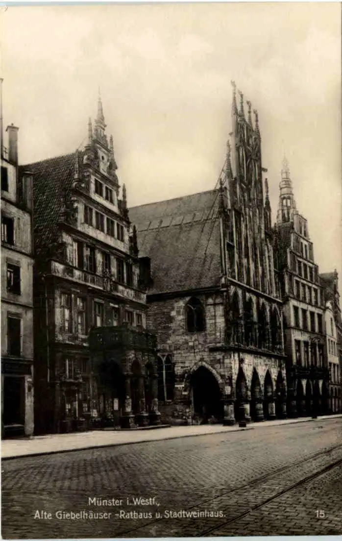 Münster i. W., Alte Giebelhäuser, Rathaus u. Stadtweinhaus -516324