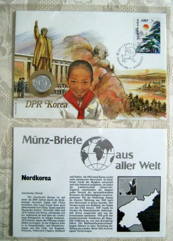 Münz-Brief 1959 Nordkorea Münze Briefmarke Landesbeschreibung