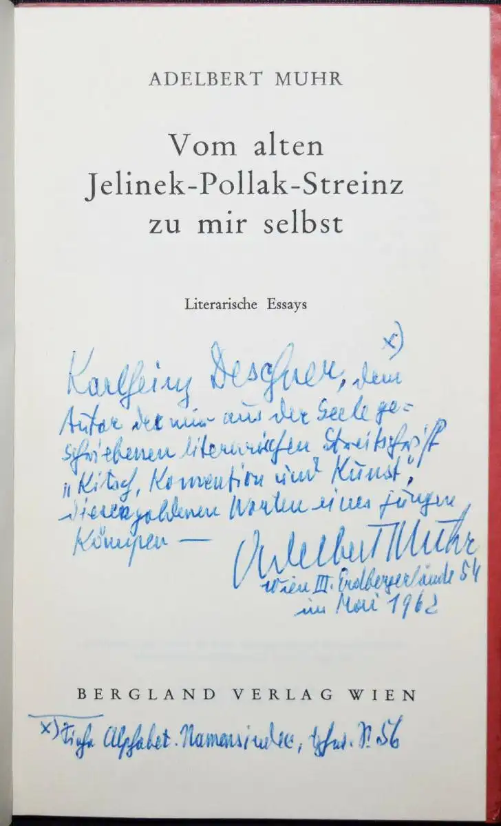Widmung von A. Muhr für den Schriftsteller und Kirchenhistoriker