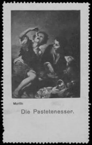 Bartolomé Esteban Murillo: Die Pastetenesser, Größe/Zustand: 7x5 , beschädigt, Original alte Reklamemarke die seinerzeit für die Werbung benutzt wurde