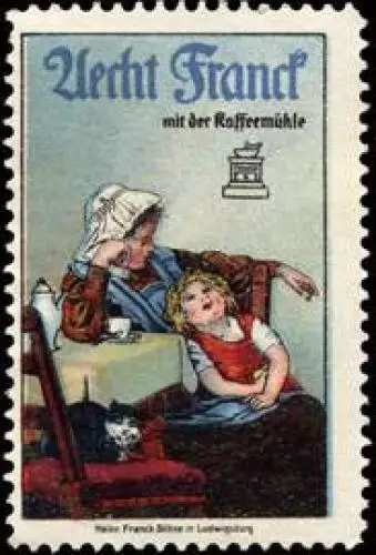 Aecht Franck mit der Kaffeemühle, Größe/Zustand: 6x4 , guter Zustand, Original alte Reklamemarke die seinerzeit für die Werbung benutzt wurde