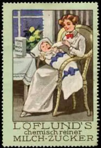 Löflunds chemisch reiner Milch-Zucker, Größe/Zustand: 7x5 , guter Zustand, Original alte Reklamemarke die seinerzeit für die Werbung benutzt wurde