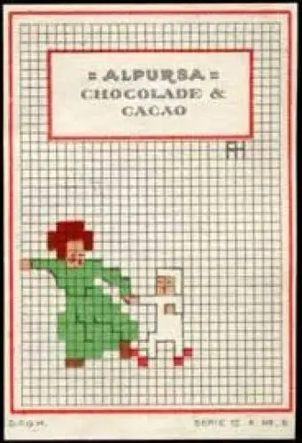 Chocolade & Cacao, Serie Nr. 12, Bild 6, Stickmuster-Serie, Stickerei, Größe/Zustand: 7x5 , guter Zustand, Original alte Reklamemarke die seinerzeit für die Werbung benutzt wurde