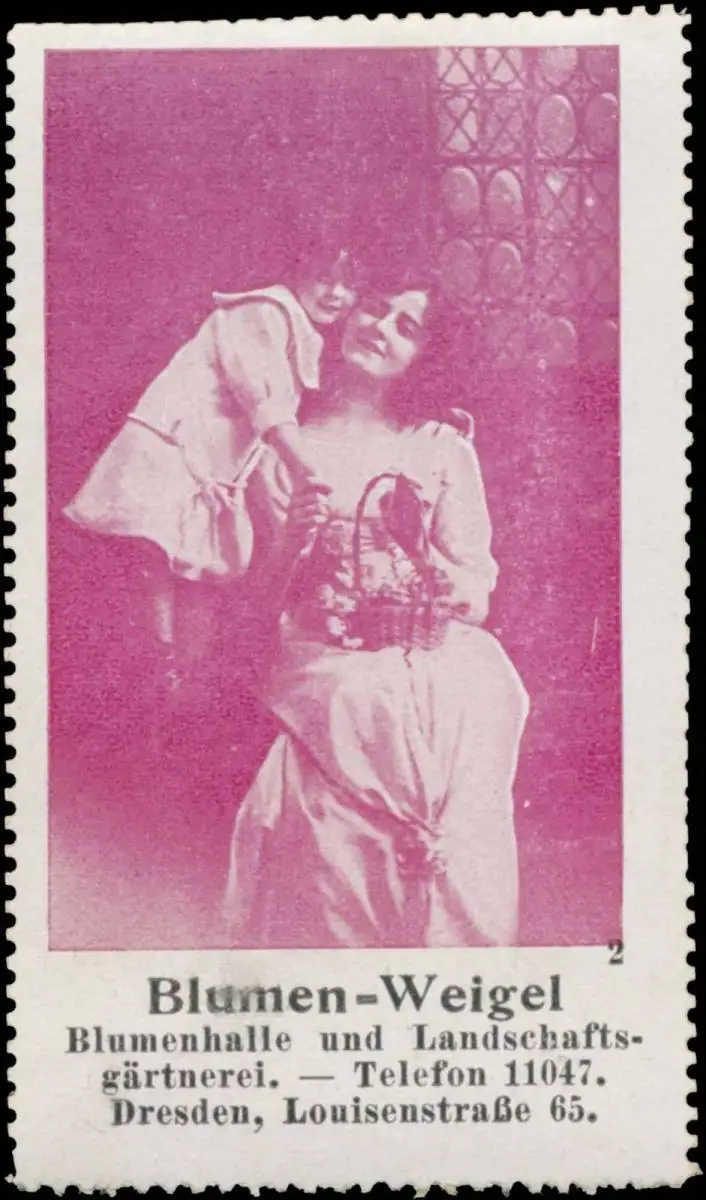 Blumenhalle und Landschaftsgärtnerei, Louisenstraße 65, Größe/Zustand: 7x4 , guter Zustand, Original alte Reklamemarke die seinerzeit für die Werbung benutzt wurde
