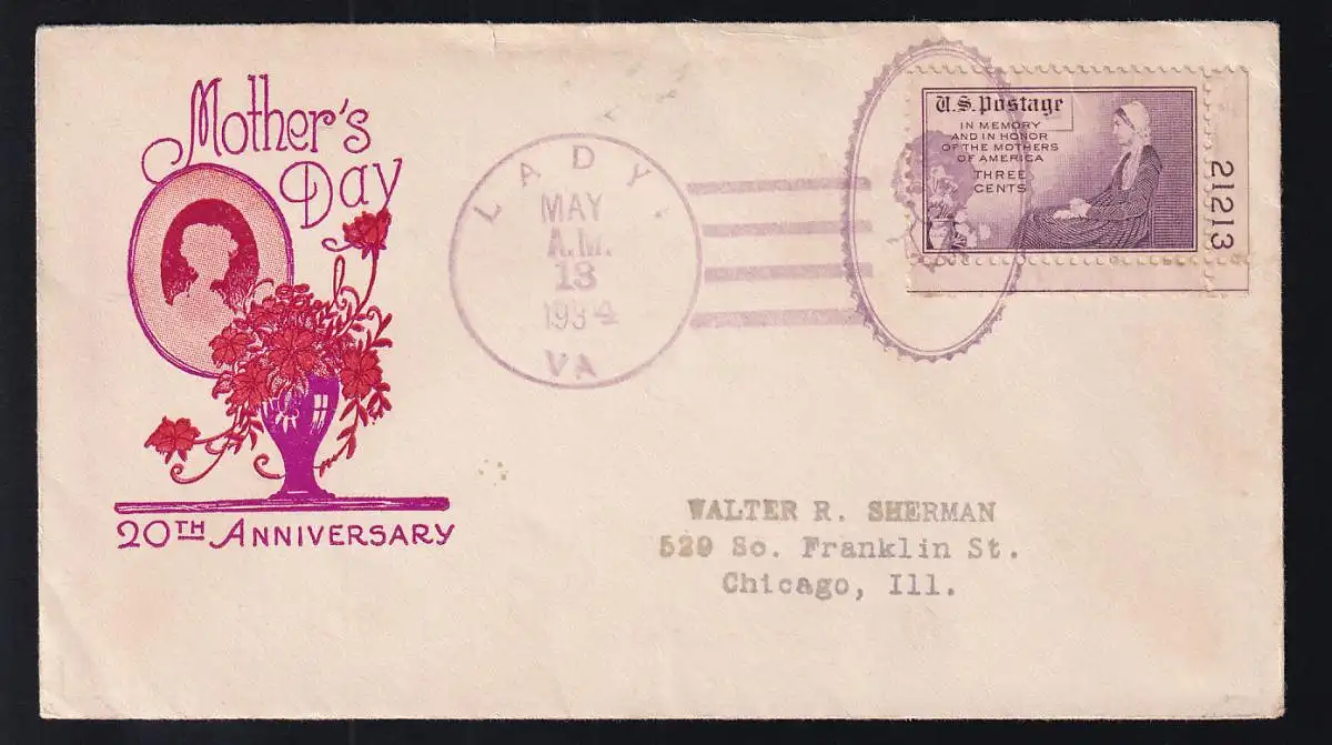 Muttertag Eckrandstüch auf Sonderumschlag (20 Jahre Muttertag) mit Figurenstempe