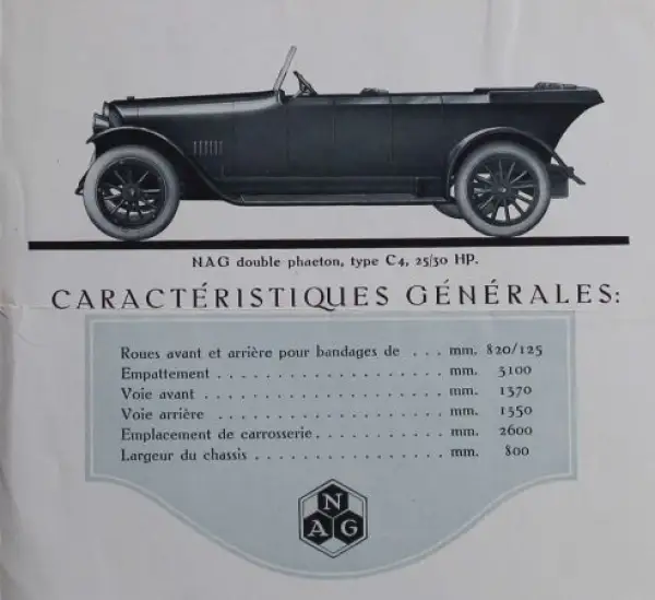 NAG 25/30 HP Modellprogramm 1922 Automobilprospekt (6089)