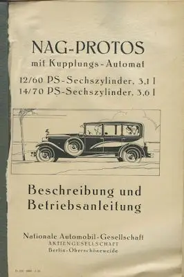 NAG-Protos 12/60 + 14/70 PS Bedienungsanleitung 3.1929