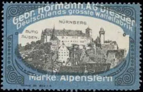 Deutschlands grösste Waffelfabrik, Waffeln Marke Alpenstern, Größe/Zustand: 3x5 , guter Zustand, Original alte Reklamemarke die seinerzeit für die Werbung benutzt wurde