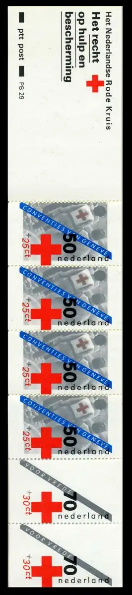 Markenheftchen Nr. 30 rotes Kreuz, mit Heftchenblatt PB 29, Deckel rot (MichelNr.: MH30, 1236C, 1239C, 1239D)