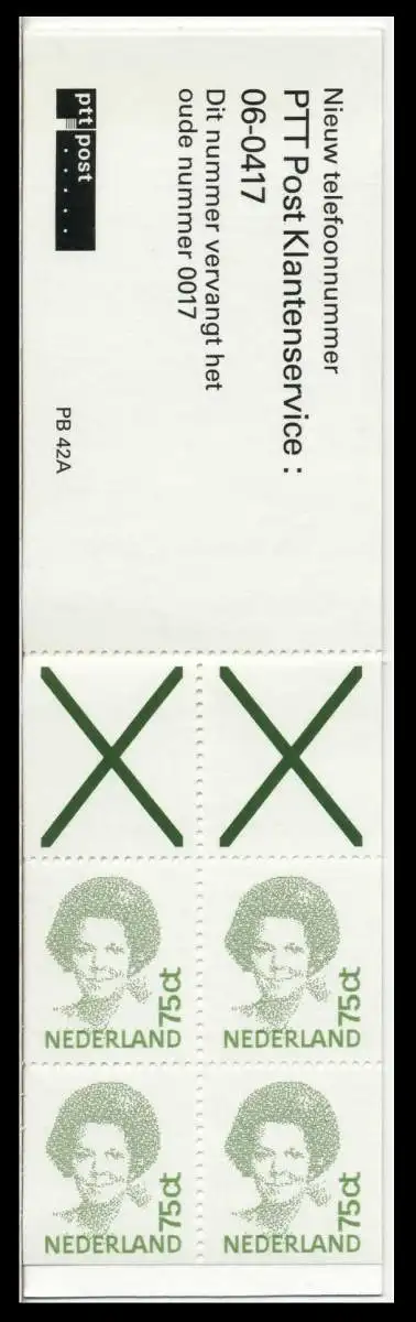 Markenheftchen Nr. 42 mit Heftchenblatt PB 42, Deckel grün (MichelNr.: MH42, 1402Dl, 1402Dr, 1402El, 1402Er)