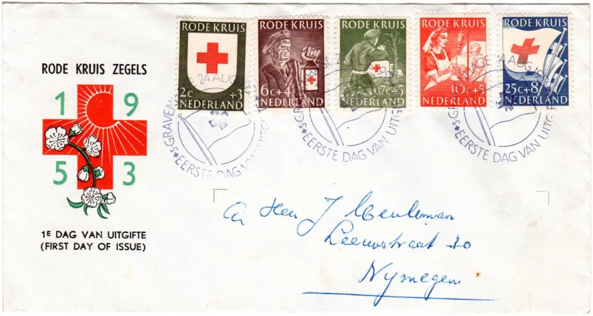 NL 1953, 5 Zuschlagswerte Rotes Kreuz kpl. auf FDC