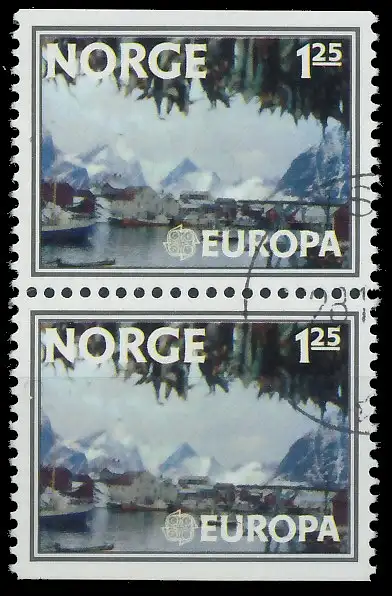 1,25 Kr Wert aus der Ausgabe Europa Gemeinschaftsausgaben CEPT 1977, senkrechtes Paar oben und unten geschnitten