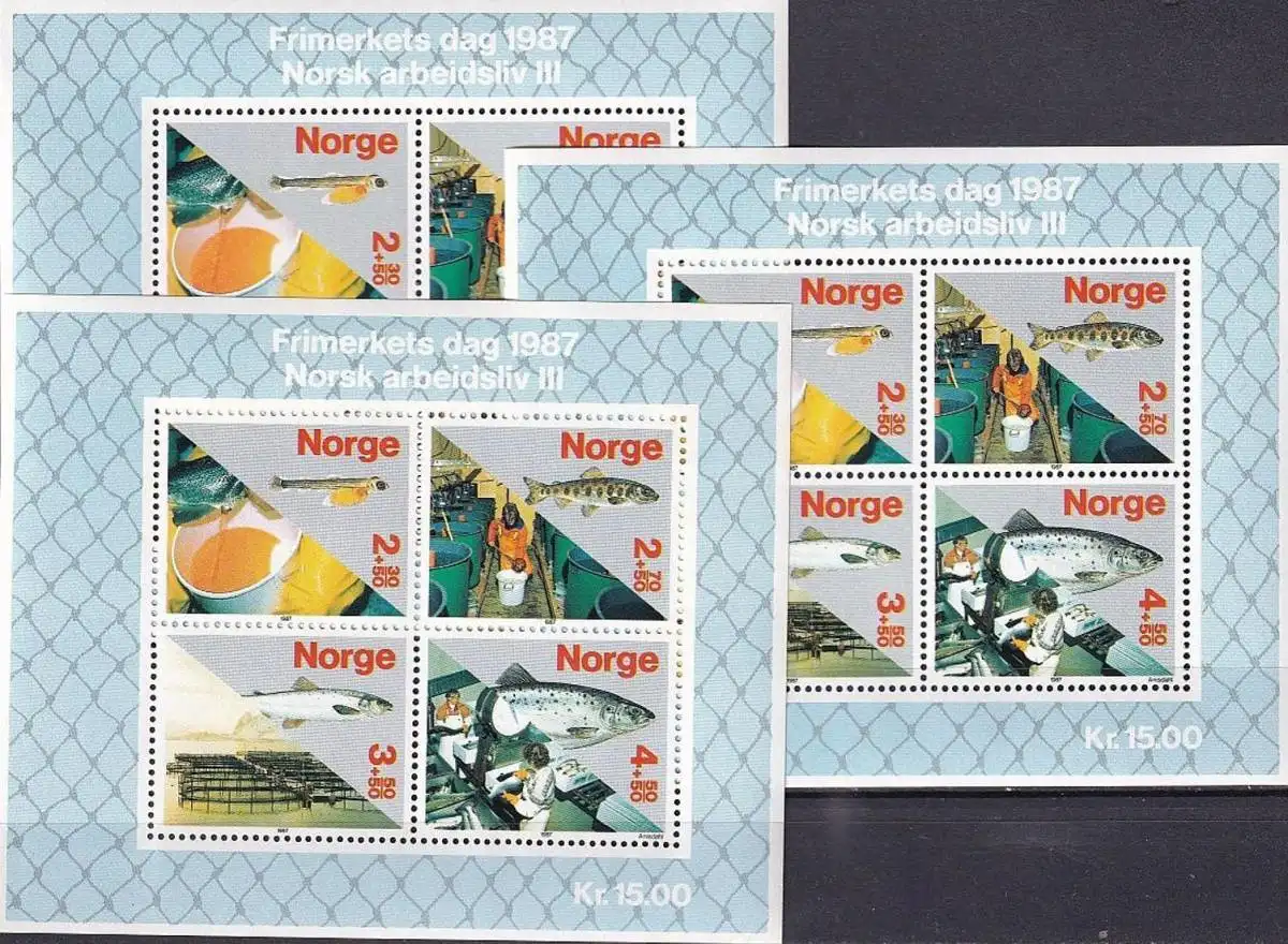 NORWEGEN 1987 Mi-Nr. Block 8 3 Stück ** MNH