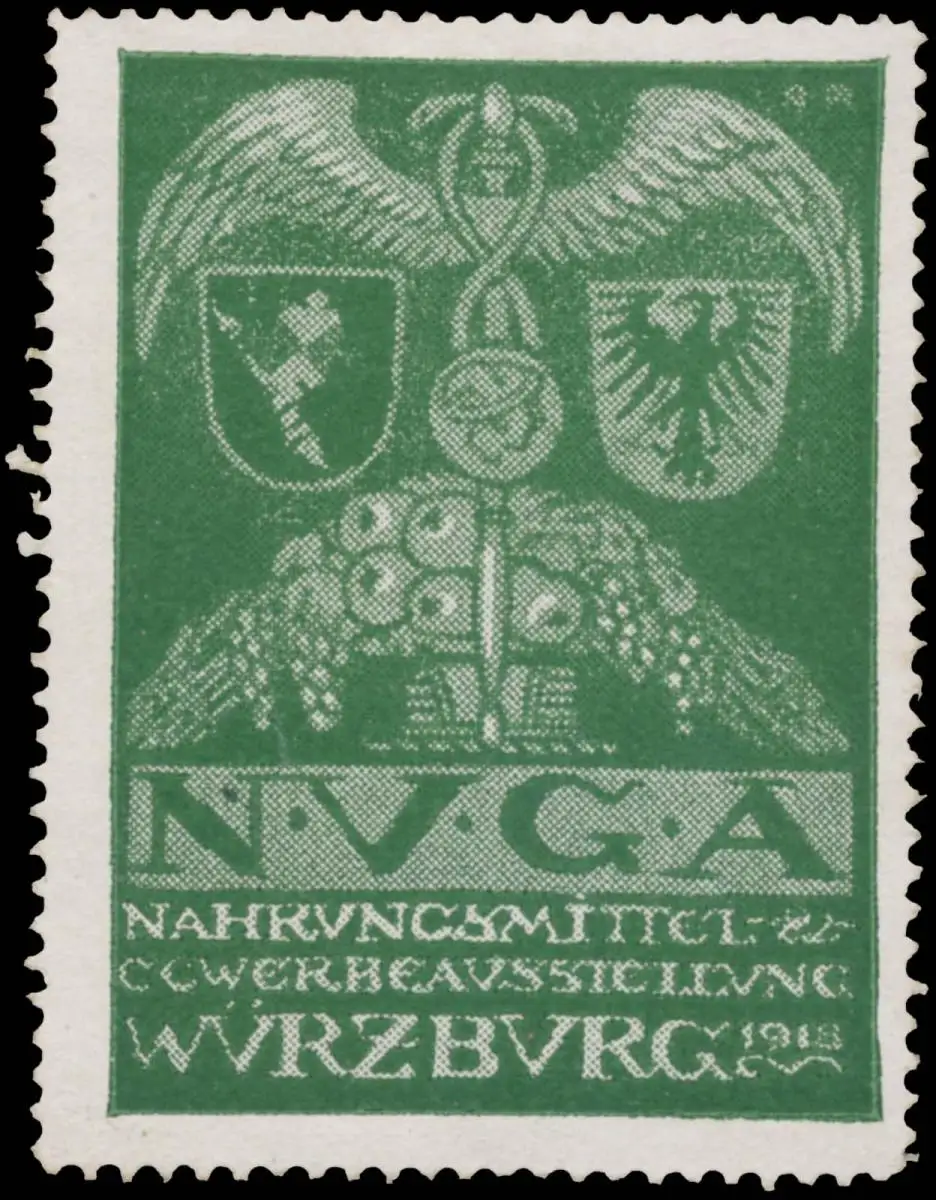Nahrungsmittel Gewerbeausstellung, grün, Größe/Zustand: 5x4 , guter Zustand, Original alte Reklamemarke die seinerzeit für die Werbung benutzt wurde