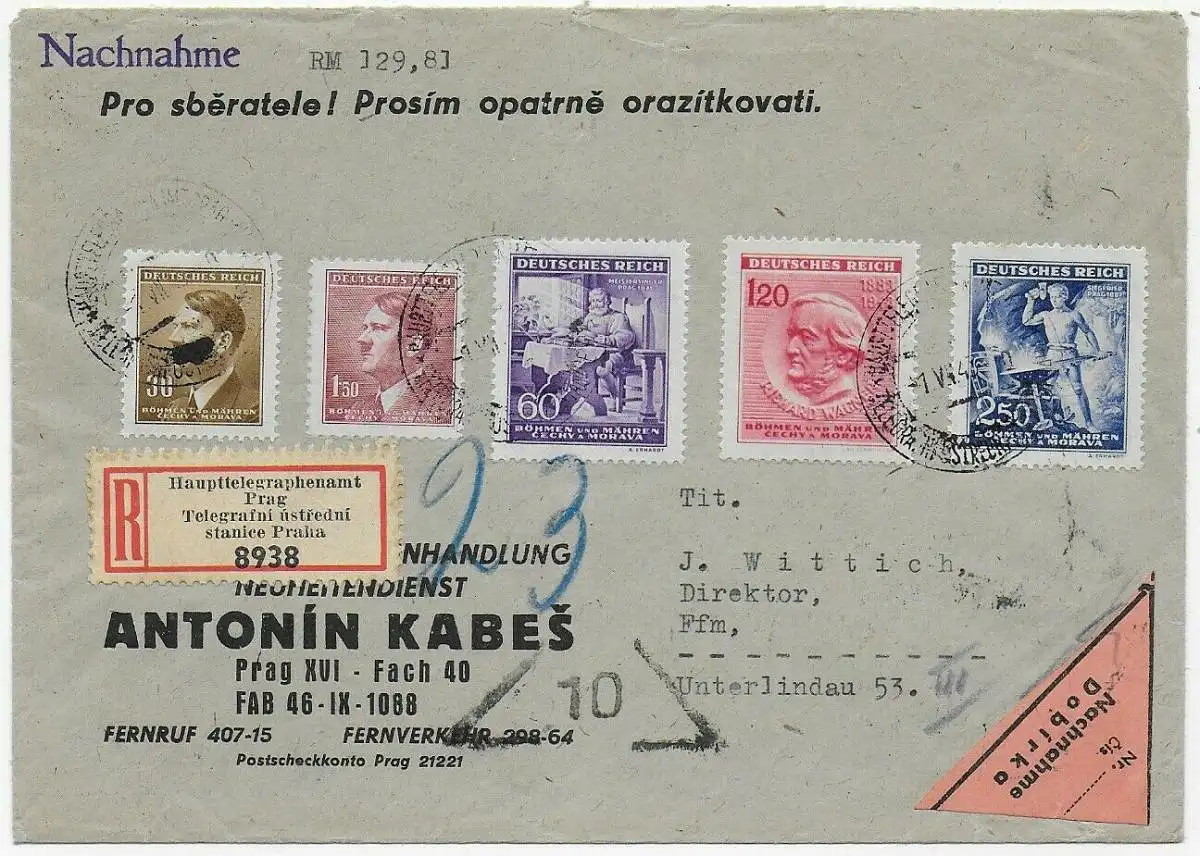 Nachnahmebrief Haupttelegraphenamt Prag nach Frankfurt