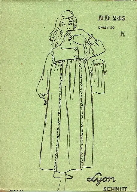 sehr guter Zustand, geringe Gebrauchs- und Alterungsspuren: Umschlag teils gering defekt - unbenutzt - Schnittmuster noch original zusammengelegt, Schnittmusterbogen, bestehend aus 8 Teilen "Die Firma Gustav Lyon wurde 1842 gegründet. Ab 1865 war sie ein Zeitschriftenverlag in Berlin, als Firma für Verlags- und Druckereiwesen 1900 im Handelsregister eingetragen. Der Verlag gab Modezeitschriften, Modell- und Schnittmusterreihen heraus ... Um 1947 erhielt der Verlag Gustav Lyon eine neue Lizenz in Ost-Berlin und gab wieder Modepublikationen heraus, darunter die beliebte Zeitschrift Modenschau. 1963 wurde er geschlossen und dem Verlag für die Frau in Leipzig eingegliedert." (Wikipedia), Papier, ca. 16 x 12