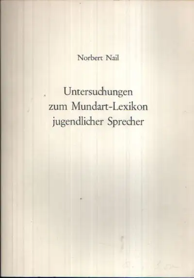 Untersuchungen zum Mundart-Lexikon jugendlicher Sprecher; Norbert Nail; Sprache; Sprachwissenschaft; deutsche Sprache; Jugend; Mundart