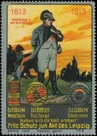Befreiungskriege, Geolin Metallputz, Globus Putz-Extract, Globin Schuhcreme, Größe/Zustand: 7x5 , guter Zustand, Original alte Reklamemarke die seinerzeit für die Werbung benutzt wurde