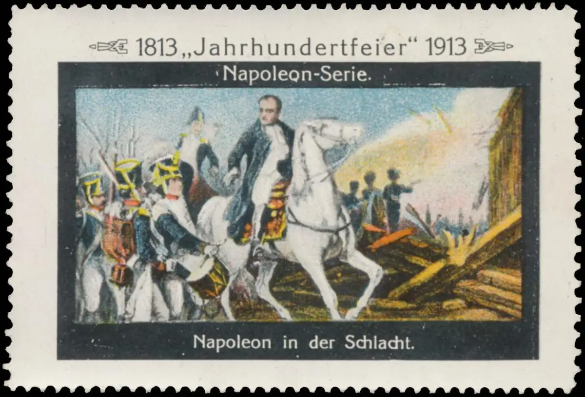 Napoleon-Serie, 1813-1913 Jahrhundertfeier, Befreiungskriege, Größe/Zustand: 5x7 , guter Zustand, Original alte Reklamemarke die seinerzeit für die Werbung benutzt wurde