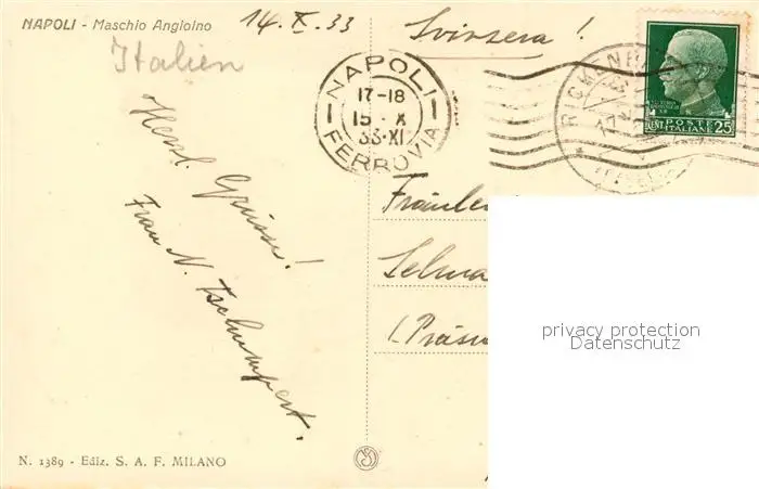 Napoli_Neapel Maschio Angioino Napoli Neapel postalisch gelaufen 1933 Erhaltung siehe scans [PaolaD17] PaolPID1