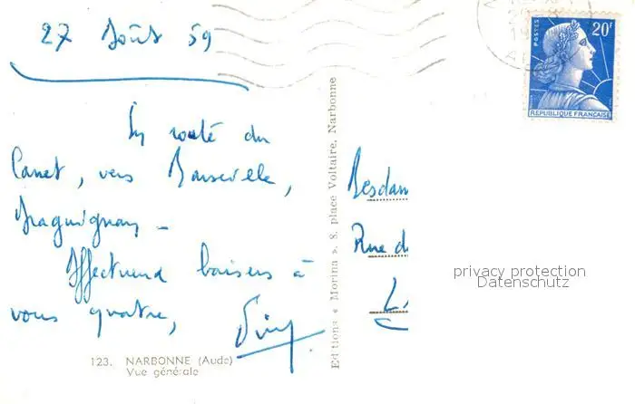 Narbonne_Aude Vue generale Narbonne Aude postalisch gelaufen 1959 Erhaltung siehe scans [WerneD78] WernPID7