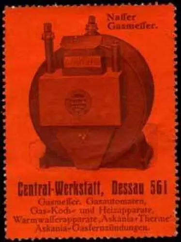 Gaszähler, Größe/Zustand: 6x4 , beschädigt, Original alte Reklamemarke die seinerzeit für die Werbung benutzt wurde