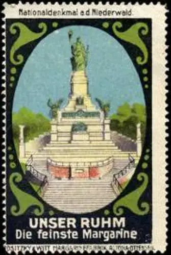 unser Ruhm die feinste Margarine, Niederwalddenkmal, Größe/Zustand: 6x4 , guter Zustand, Original alte Reklamemarke die seinerzeit für die Werbung benutzt wurde