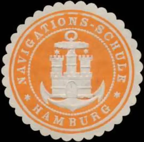 Navigations-Schule, Marine, Navigation, hellrot, weiß, geprägt, Größe/Zustand: 4 , guter Zustand, Original Verschluss-Siegelmarke aus Papier welche früher von Behörden, Firmen etc. zum Versiegeln der Briefe benutzt wurden