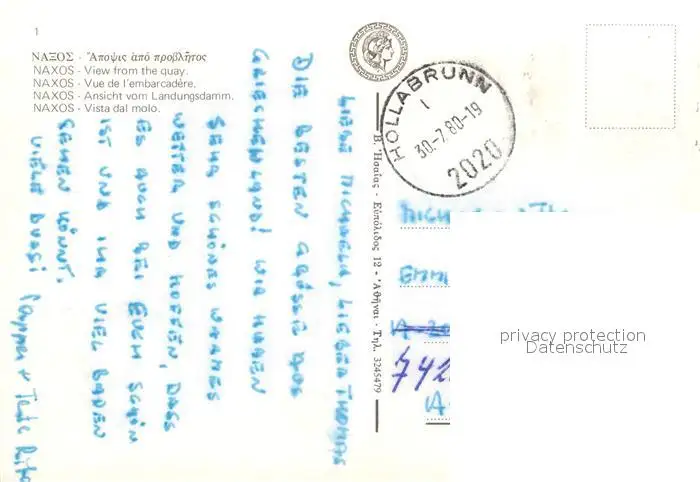 Naxos Vista dal molo Naxos postalisch gelaufen 1980 Erhaltung siehe scans [WerneD78] WernPID7