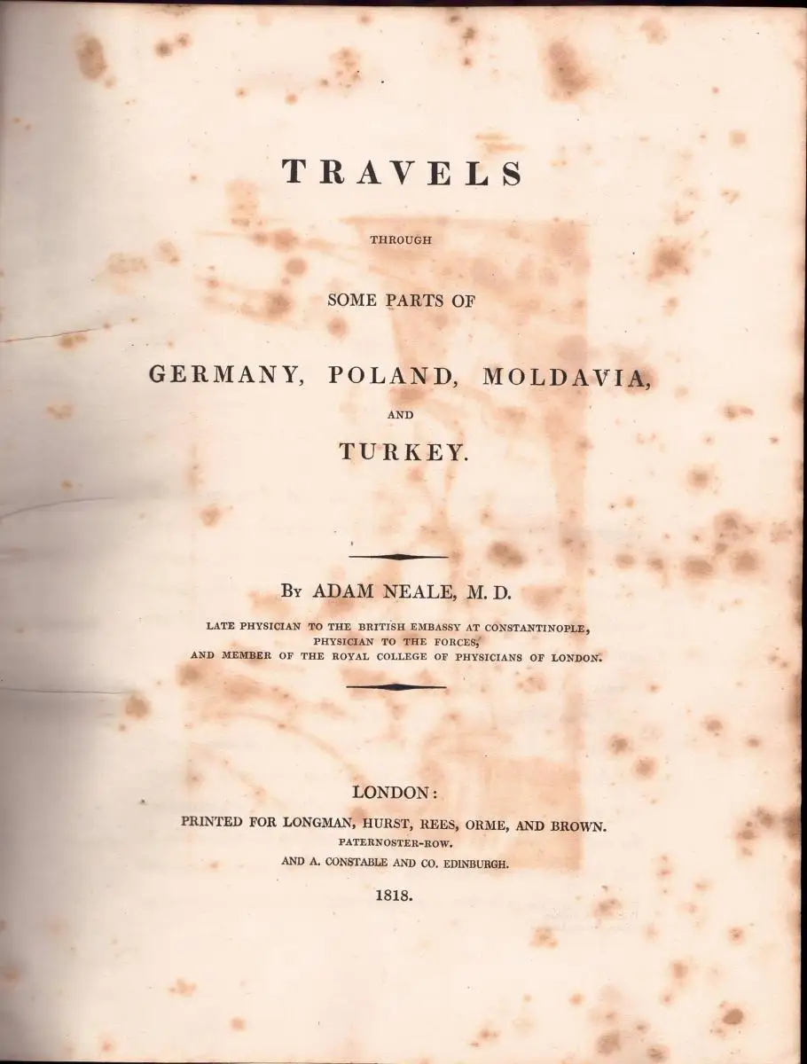 Neale, Adam: Travels through some parts of Germany, Poland, Moldavia, and Turkey.