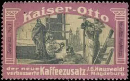 Kaiser-Otto der neue verbesserte Kaffeezusatz, Serie XIII, No. 1, Größe/Zustand: 3x6 , guter Zustand, Original alte Reklamemarke die seinerzeit für die Werbung benutzt wurde