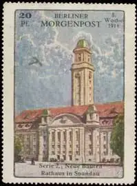 Rathaus in Spandau, Quittungsmarke der Berliner Morgenpost, 8. Woche 1914, Serie 2, Flugmarke , Größe/Zustand: 7x5 , beschädigt, Original alte Reklamemarke die seinerzeit für die Werbung benutzt wurde