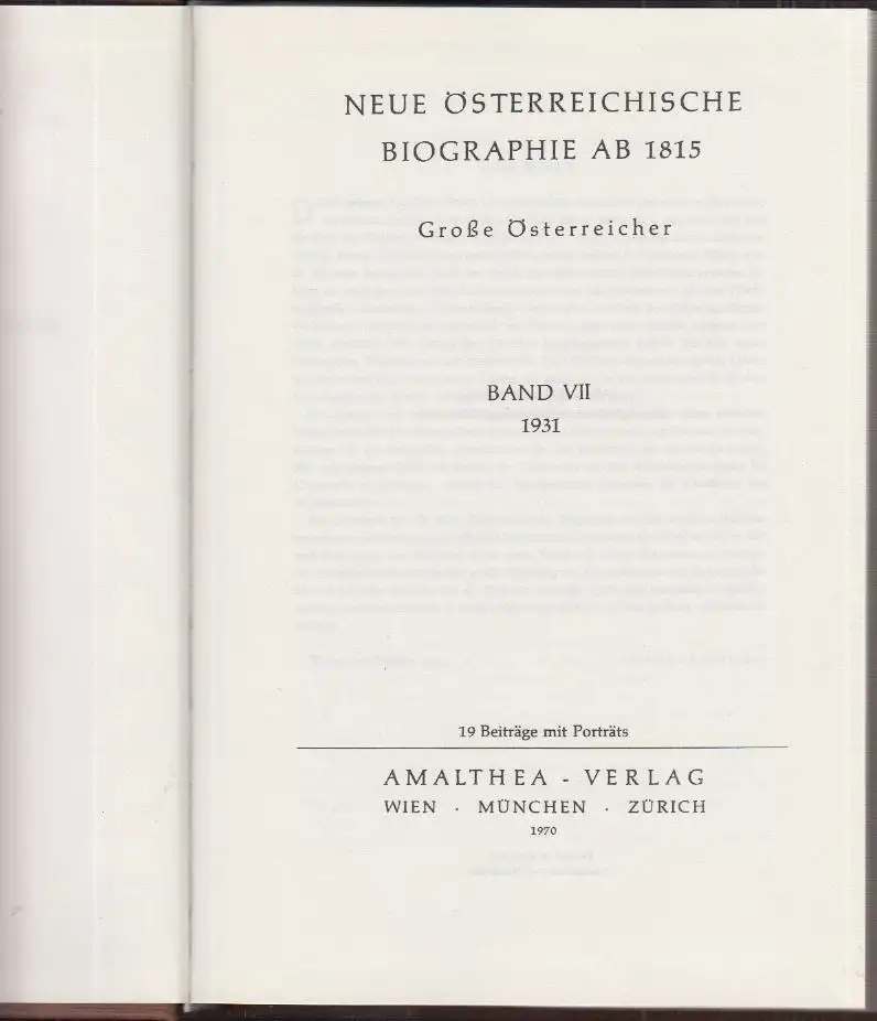 Zch./Lpz./Wien, Amalthea 1970. Bd. VII, 1931. gr.-8°. 233 S., 1 Bl. Mit 15 Abb. OLn.