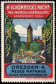 H. Schönrocks Nachfolger Weingrosshandlung, Dresden, Größe/Zustand: 6x4 , guter Zustand, Original alte Reklamemarke die seinerzeit für die Werbung benutzt wurde