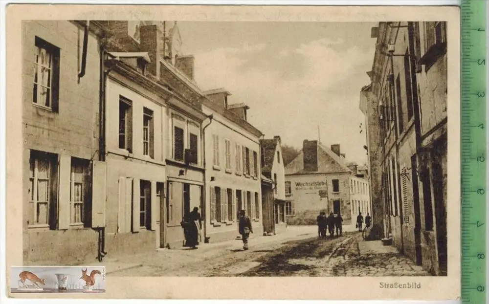 Neufchatel. Straßenbild-1918-, Verlag: Dr. Trenkler & Co., Leipzig, FELD- POSTKARTE ohne Frankatur, mit Stempel,