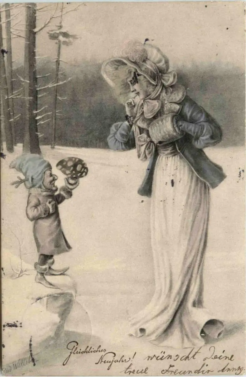 Neujahr - Frau mit Zwerg -423944