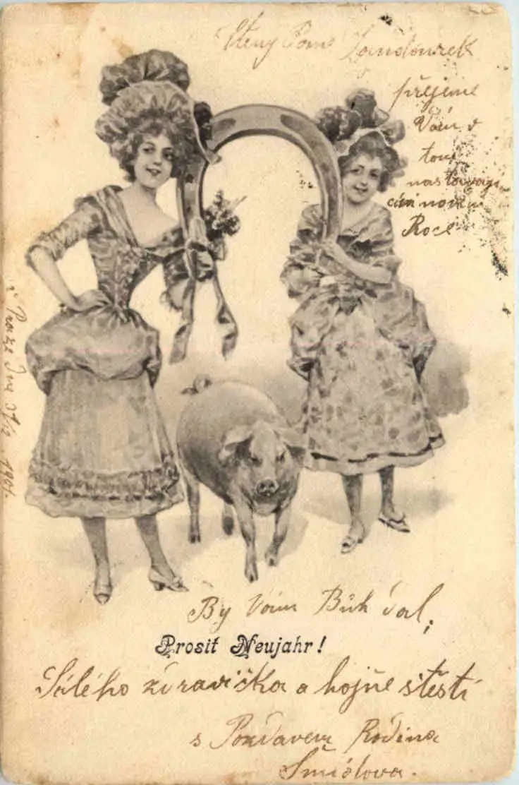 Neujahr - Frauen mit Schwein -652878